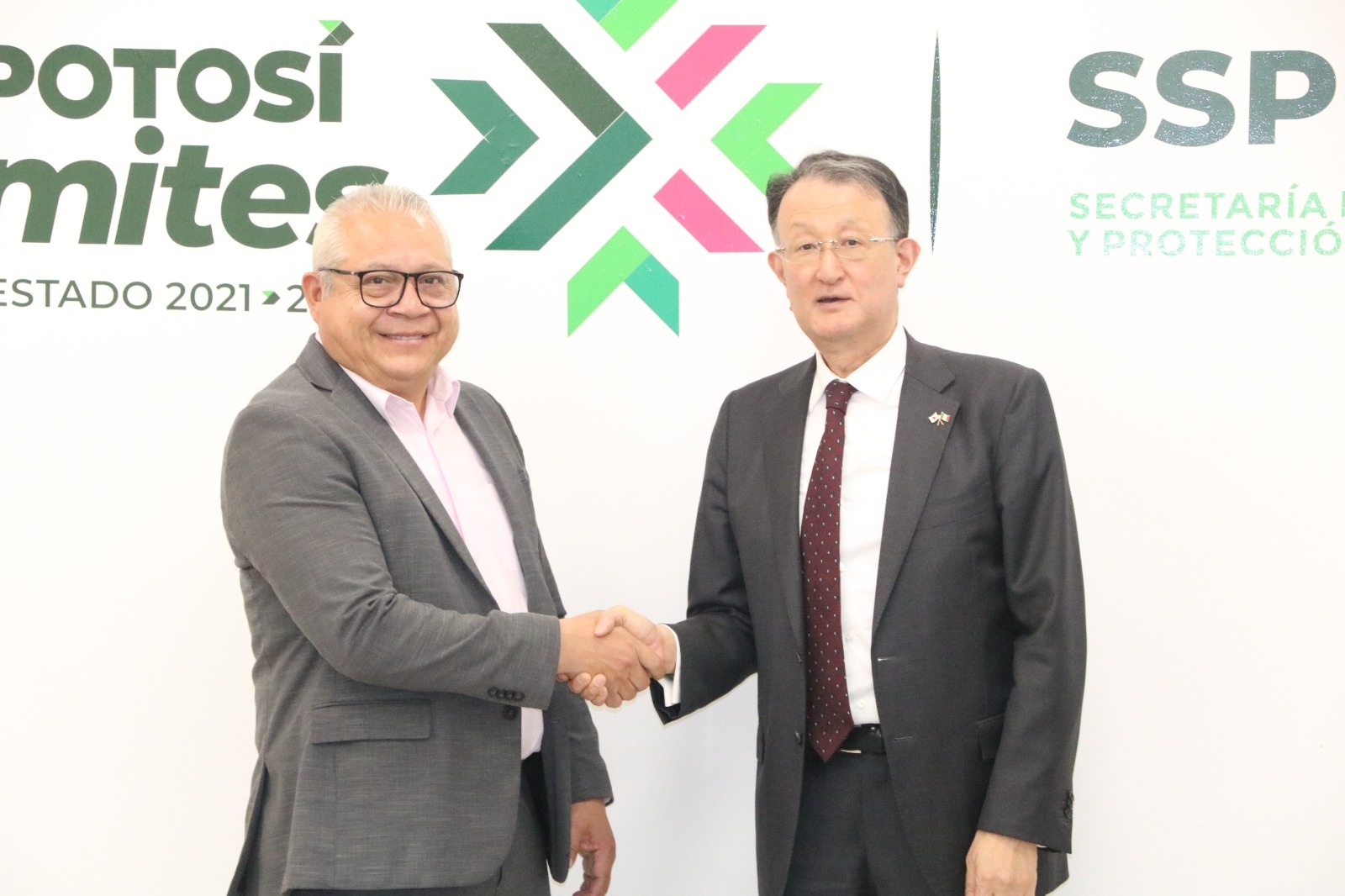 El Cónsul General Takero Aoyama intercambió opiniones con el Mtro. Jesús Juárez Hernández, secretario de Seguridad y Protección Ciudadana del estado de San Luis Potosí.