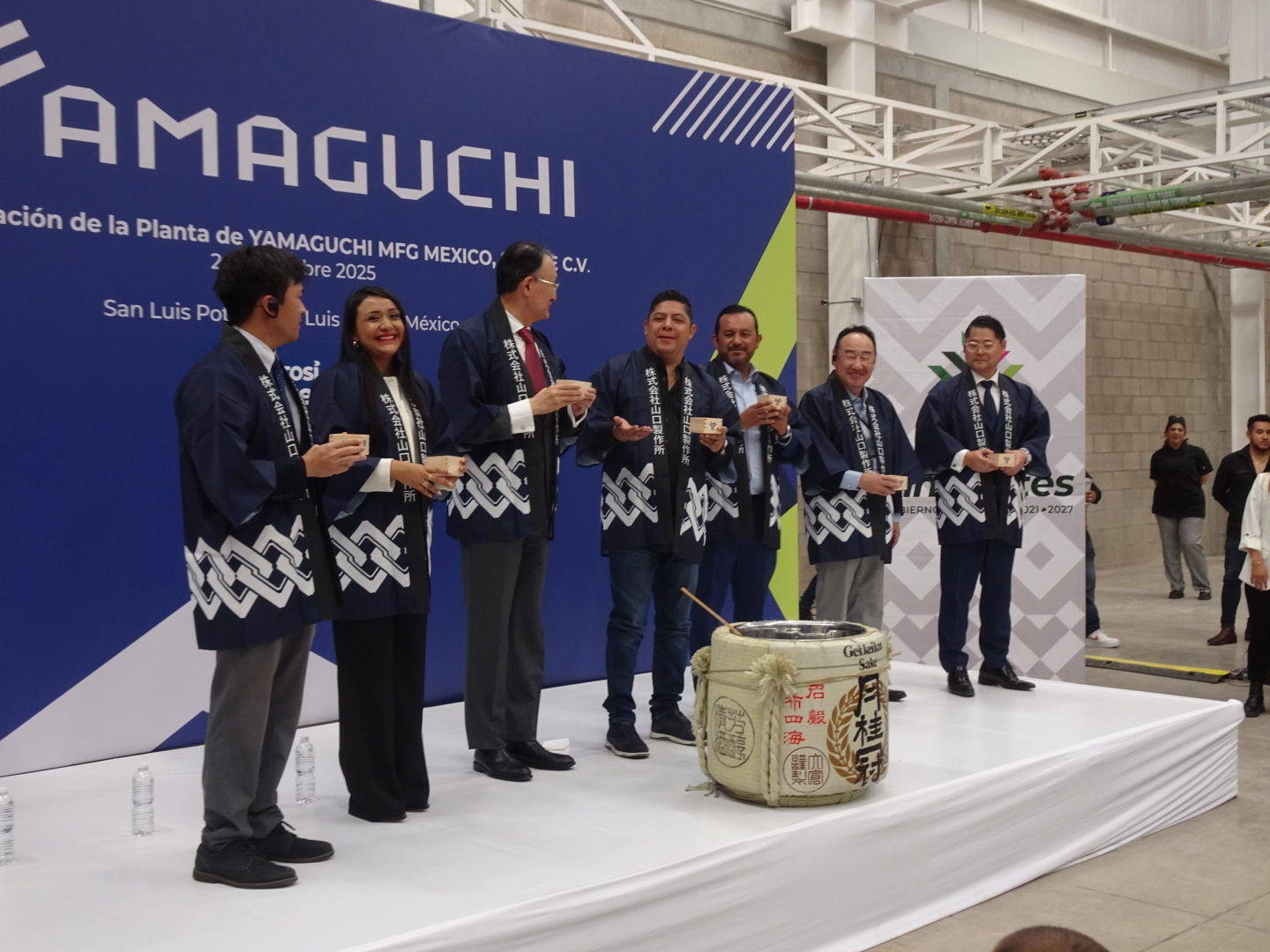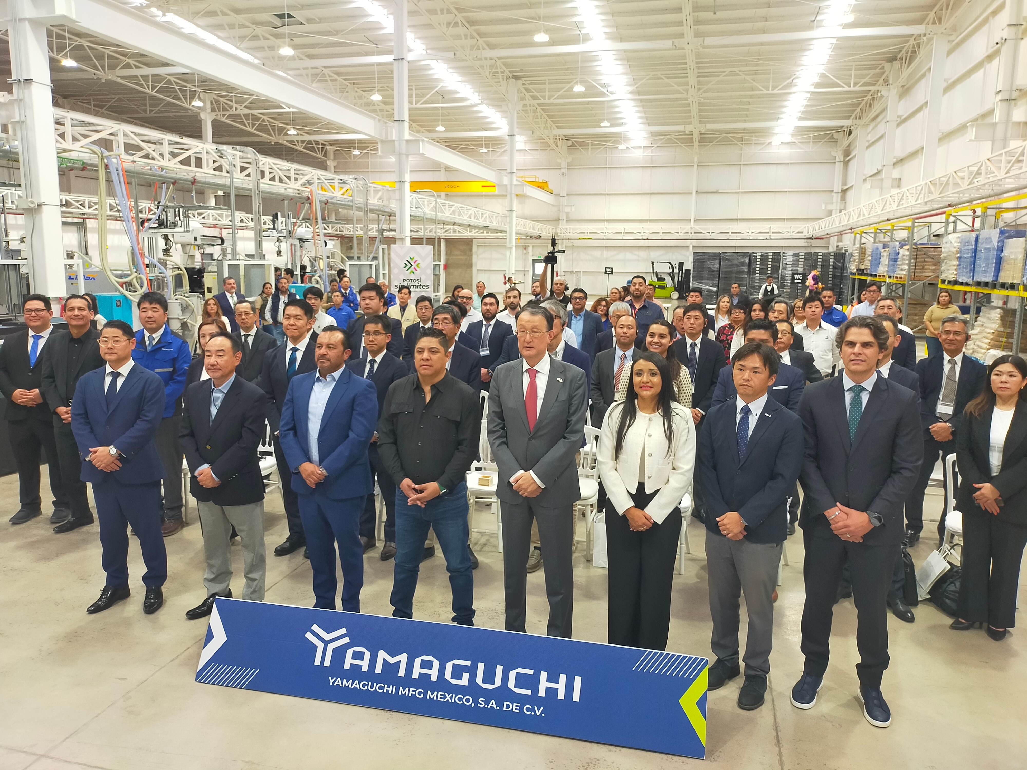 同式典にはメキシコ側から、ガジャルド・サン・ルイス・ポトシ州知事、ゴンザレス同州経済開発長官、リベラ・ビジャ・デ・ポソス市長等、日本から山口聖三山口製作所代表取締役社長等が出席し、従業員らと共に開所を祝いました。