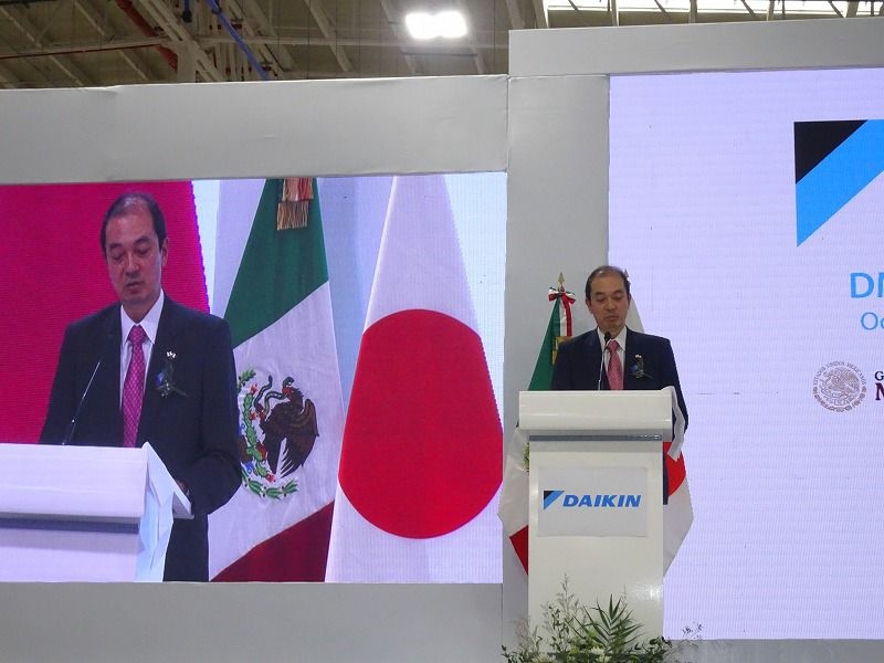青山総領事は、本清在メキシコ大使とともに、ダイキンマニュファクチャリングメキシコの新工場開所式に出席しました